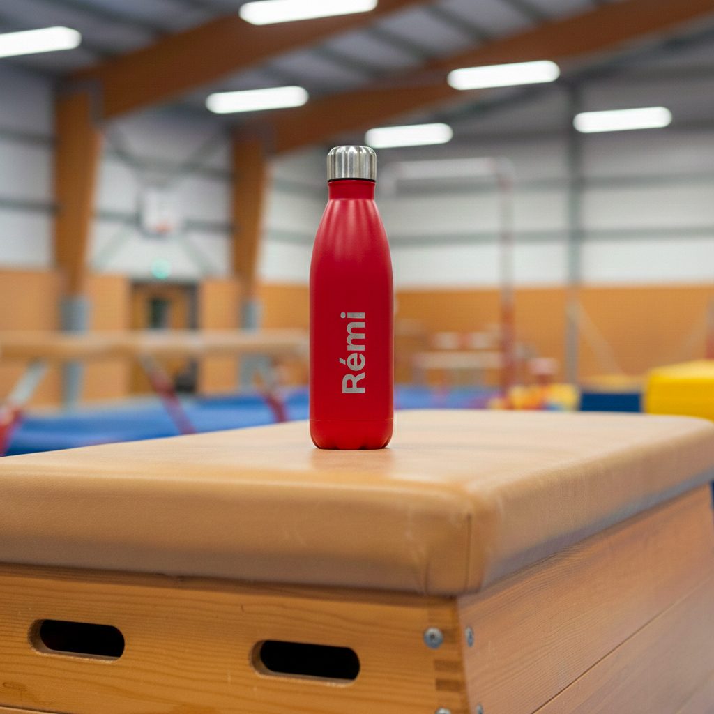 Fini le plastique à usage unique ! La gourde « AquaGym » en aluminium est le compagnon idéal des gymnastes qui recherchent une hydratation efficace et écologique. Son coloris rouge dynamique est parfait pour s’harmoniser avec les couleurs de votre équipe. De plus, grâce à la gravure de votre prénom, vous êtes certain que cette gourde sera la vôtre et ne sera jamais confondue avec celle d’un autre gymnaste !